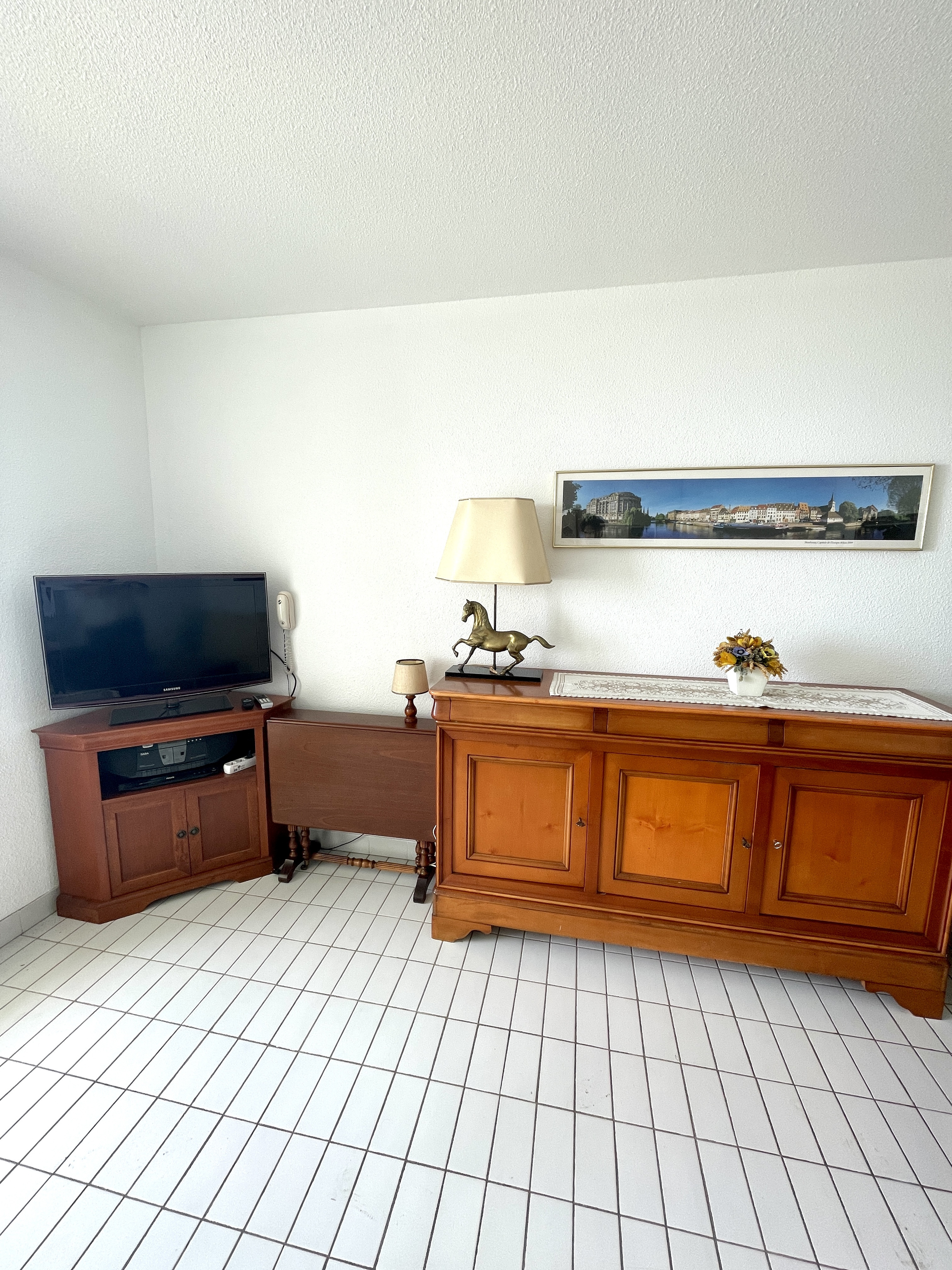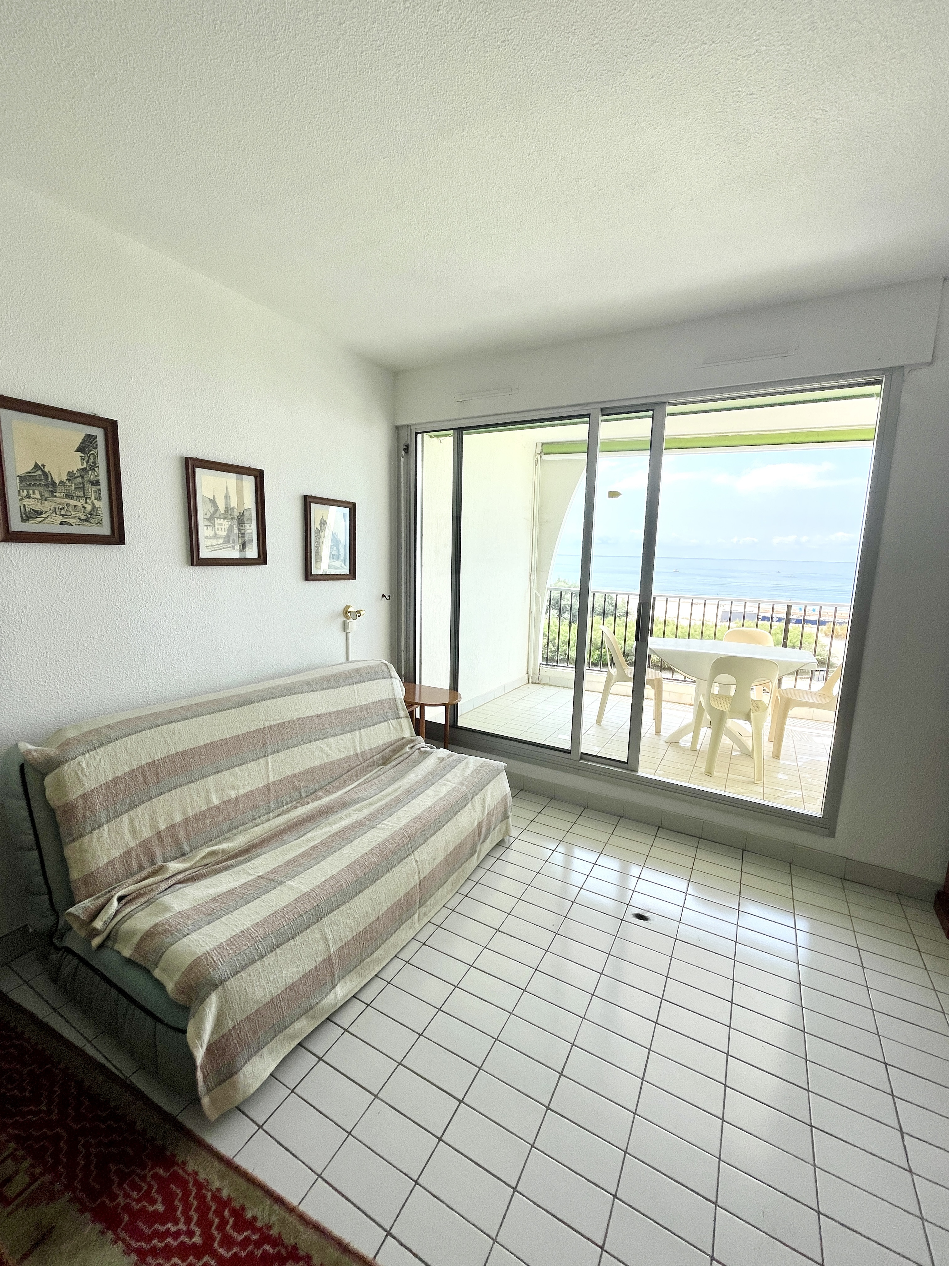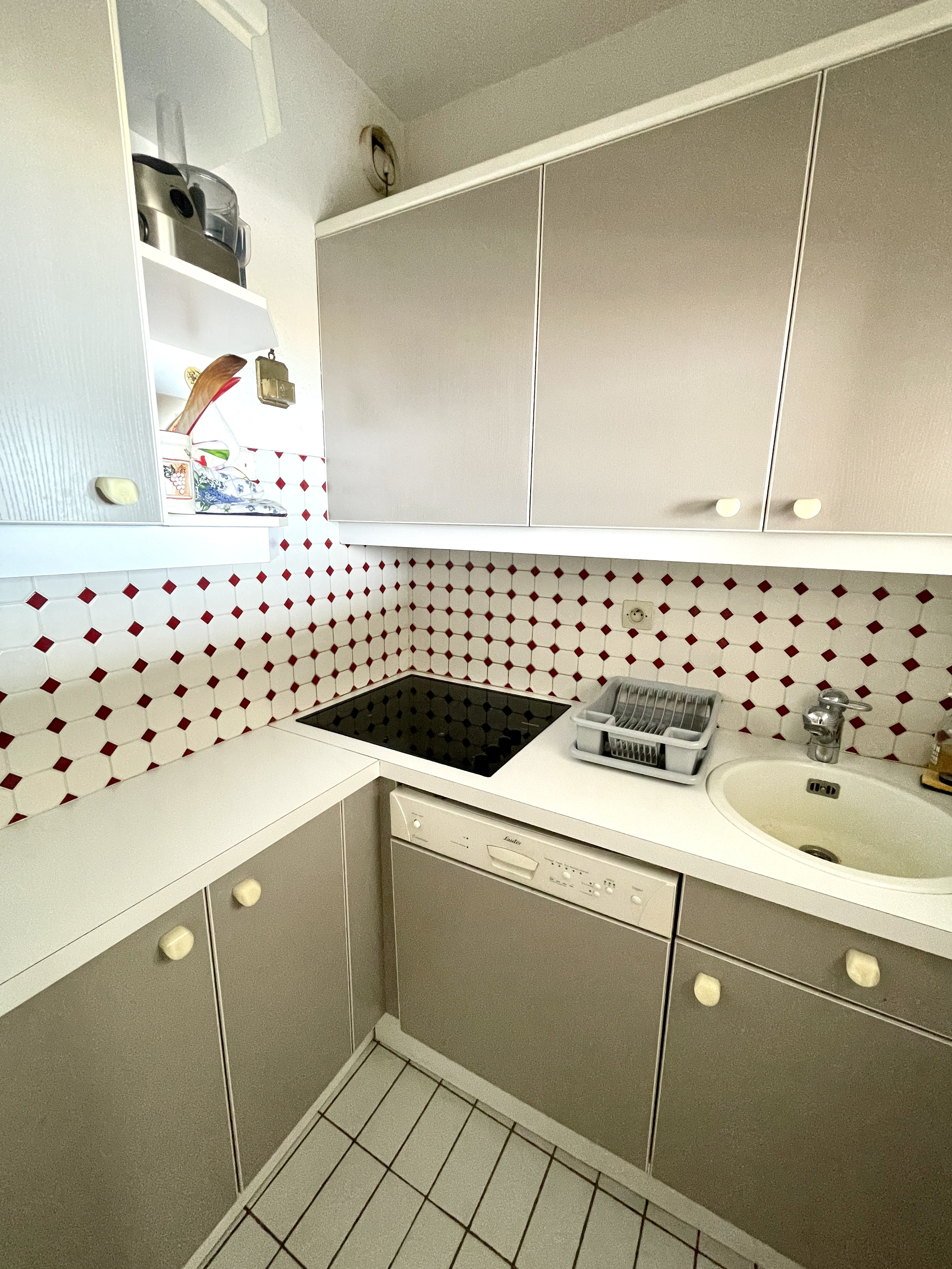 Dans une résidence sécurisée avec place de parking privative, appartement type 2 au 1er étage comprenant entrée, chambre, salle d'eau, wc séparé, cuisine équipée aménagée avec séjour, canapé lit confort,...